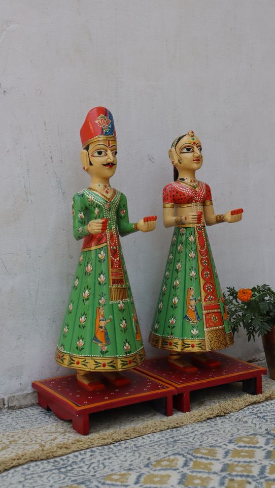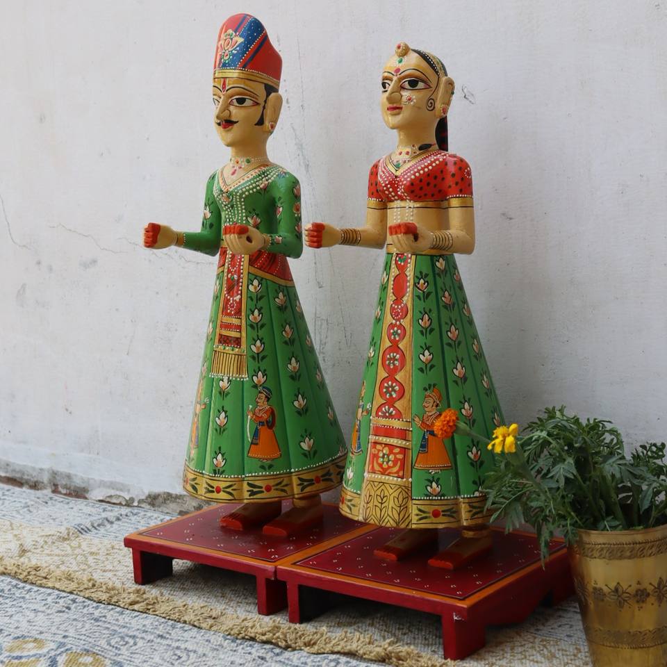 Nom du produit:Pièce maîtresse de poupée Issar Gangaur peinte à la main en bois