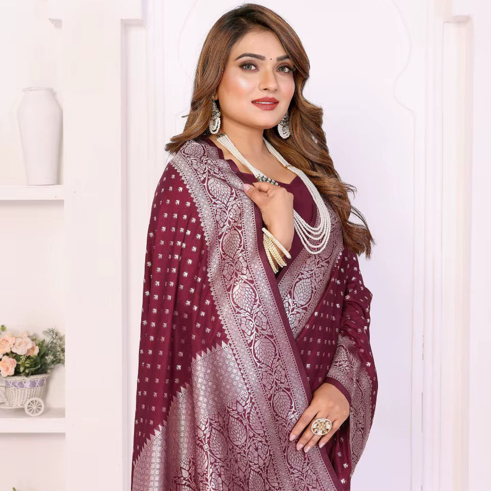 Sari en soie Georgette avec broderie Zari traditionnelle – Texture lisse et brillance subtile pour les fêtes et les mariages