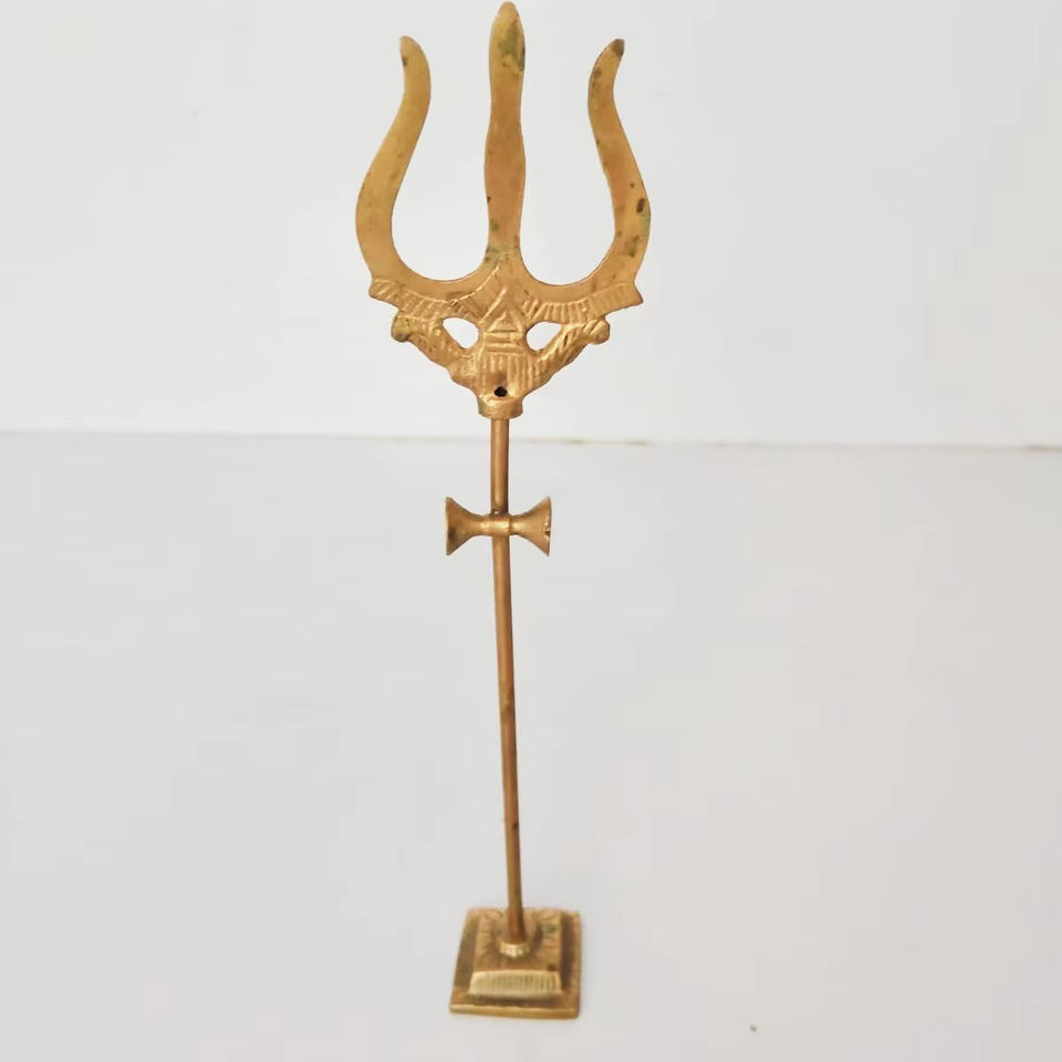 Traditional and gold plated Brass Trishul Sculpture, a Divine Trident Symbol. Available at Wholesale Prices.