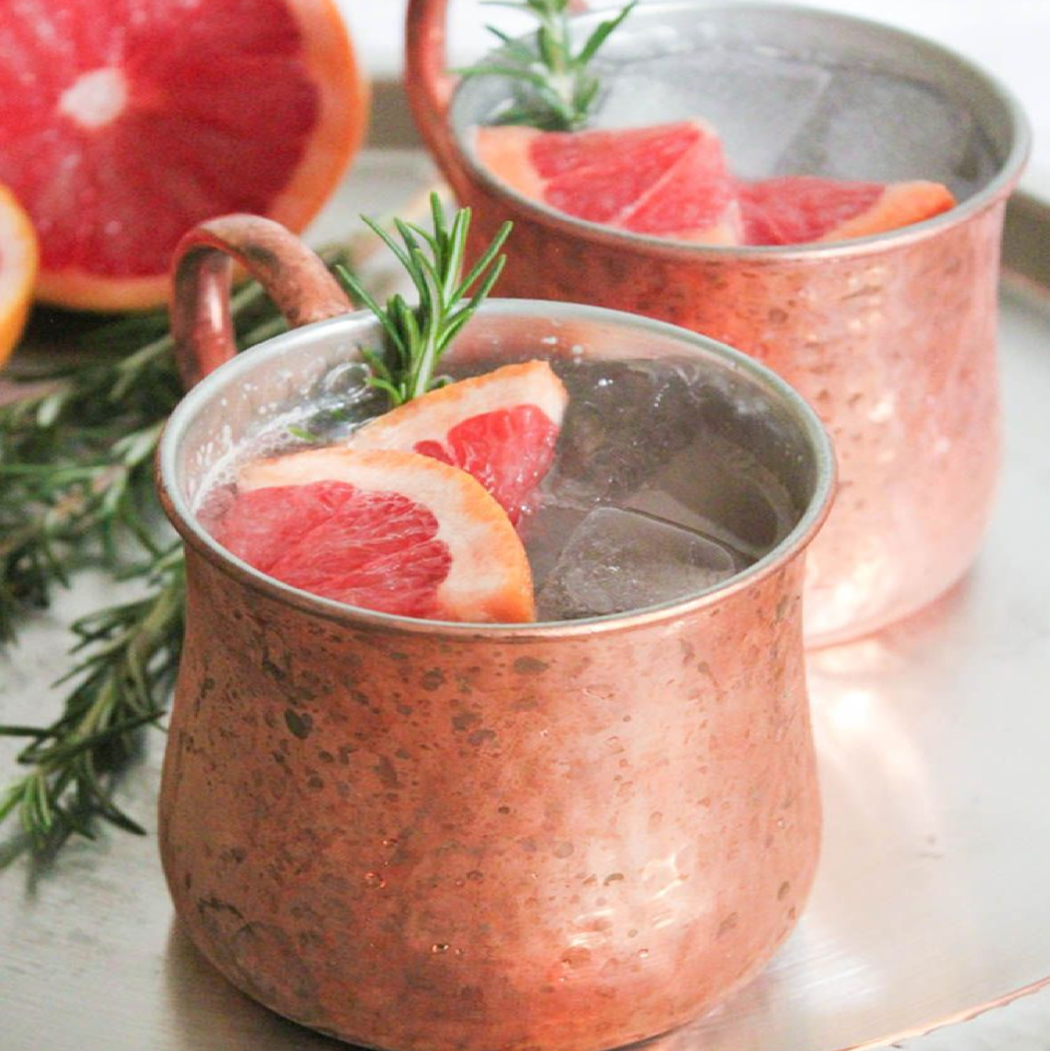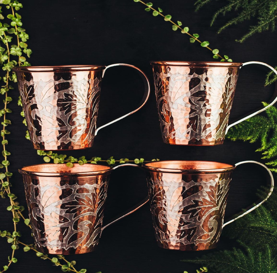 Tasses traditionnelles en cuivre martelé à poignée ronde, parfaites pour servir des cocktails au citron et à la menthe. Disponible en gros