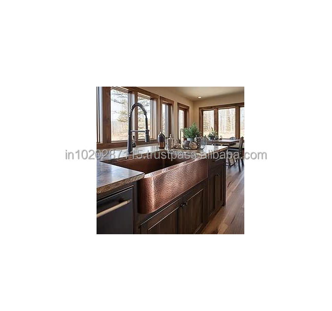 Évier de cuisine en cuivre de style traditionnel complétant les intérieurs classiques des maisons d'inspiration vintage avec un caractère authentique