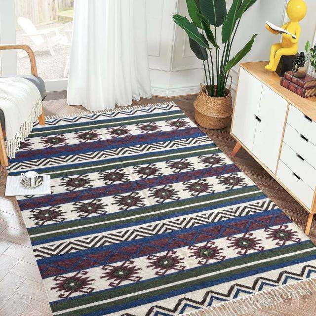 Traditional wool cotton dhurrie rug carpet kilim mat in 4x6 feet perfect for entryways and cozy corners