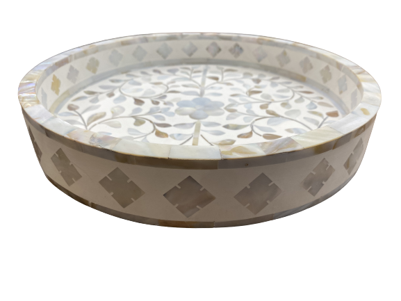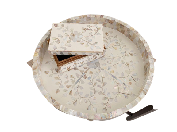 Plateau de service en nacre de haute qualité avec design floral pour bar de bureau d'hôtel à domicile fabriqué en Inde de style traditionnel