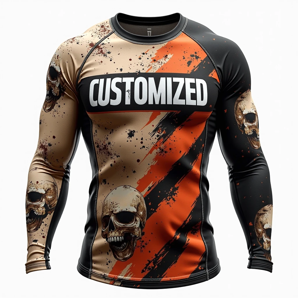 Rashguards de BJJ de qualité supérieure pour l'entraînement, impression numérique personnalisée, extensible, durable, respirant, 100% polyester