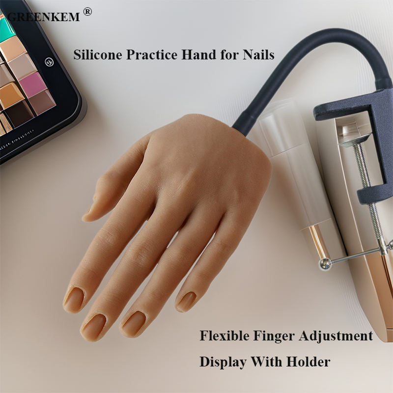 Main réaliste en Silicone, outil d'entraînement pour les ongles, réglage du doigt, avec support, main de pratique