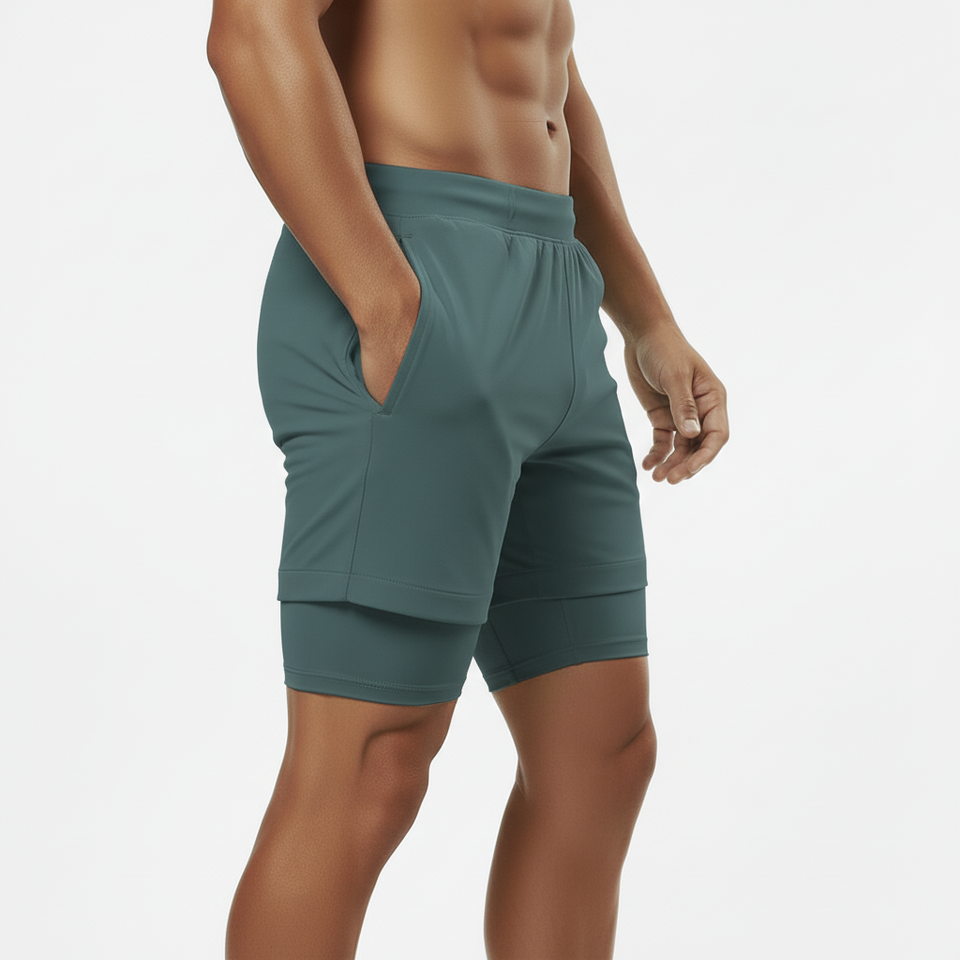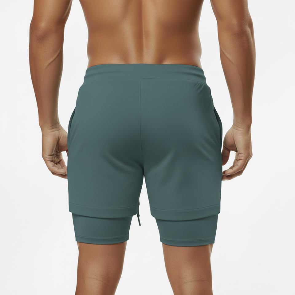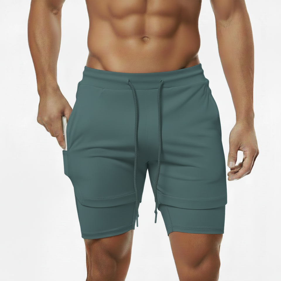 Shorts de sport respirants et anti-transpiration avec poche pour téléphone et serviette, 2 en 1, pour homme