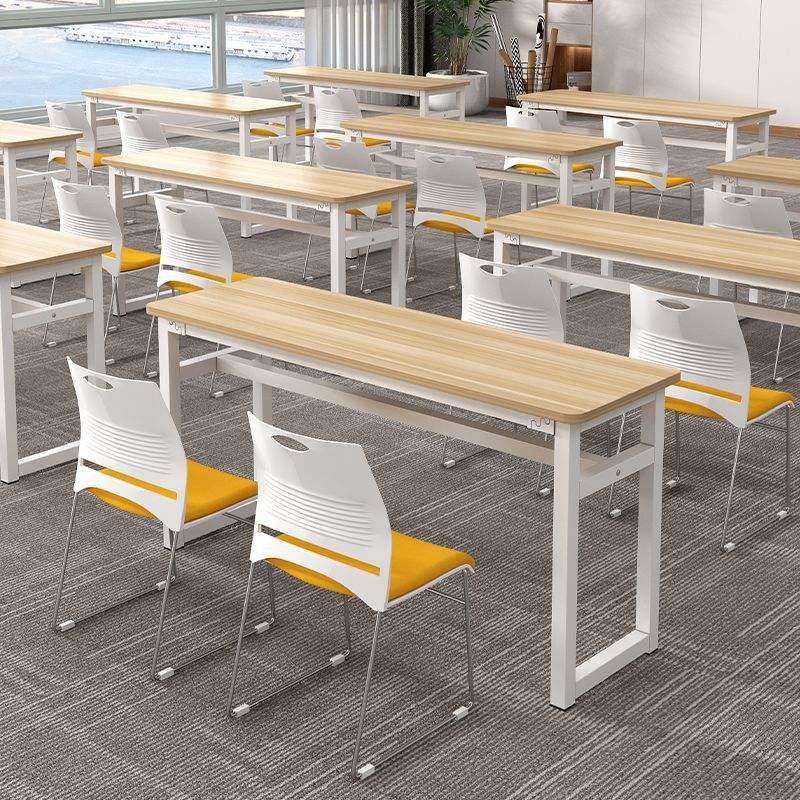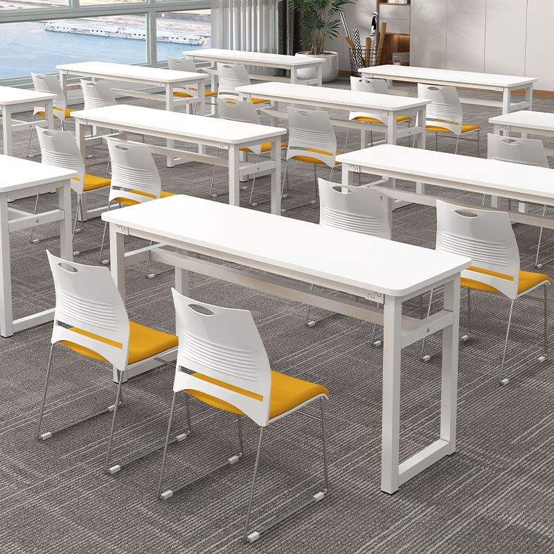 Training Table And Chair Set For School Classroom Durable Stain Resistant White With Yellow Seat