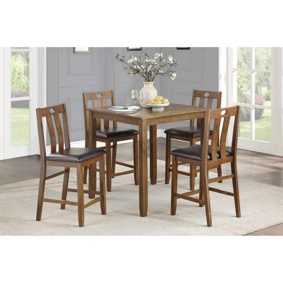 Ensemble de table à manger de style transitionnel de 5 pièces, finition brune, 4 sièges rembourrés, chaises de cuisine en bois, meubles de salle à manger