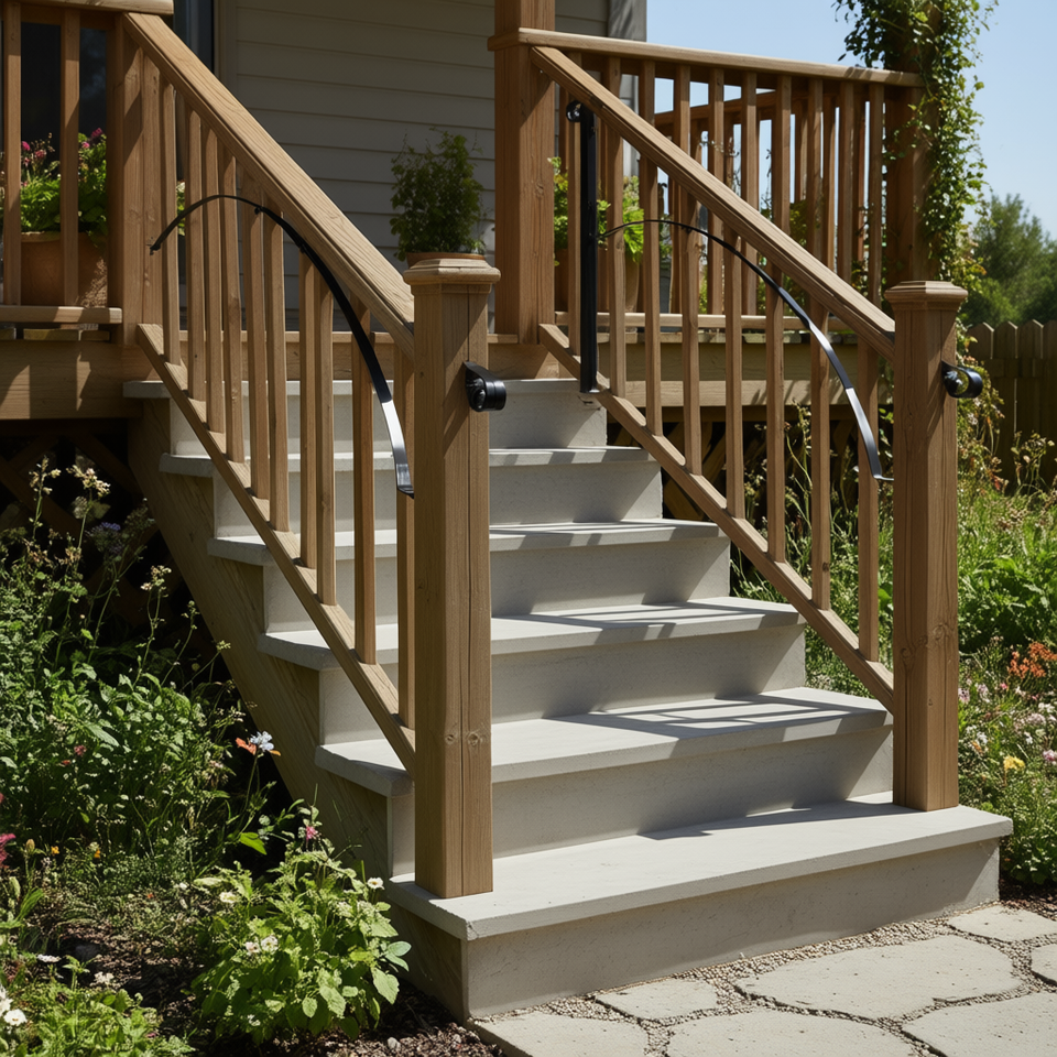Rampe d'escalier extérieure en fer forgé noir Venor, style transitionnel, pour marches, balustrade de véranda flexible, pièces pour escaliers 3 ou 4 marches