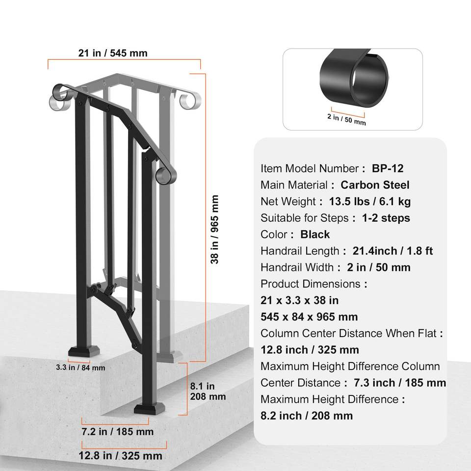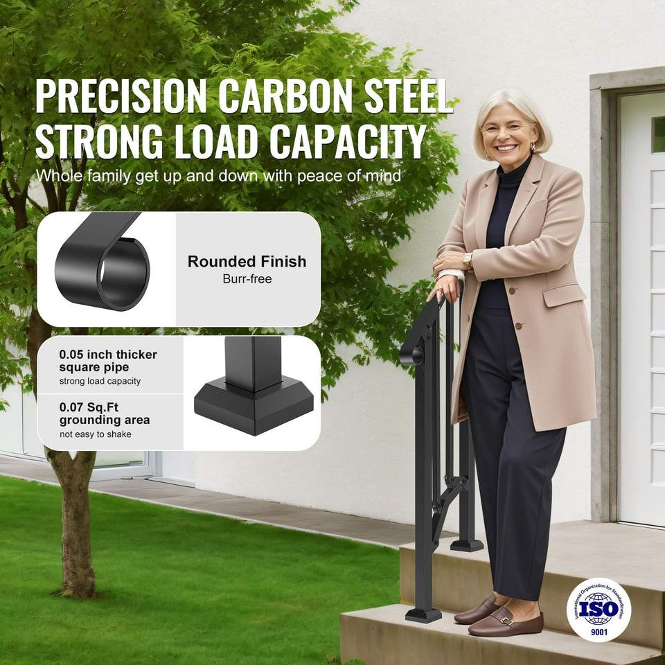 Kit de main courante d'escalier à 1-2 marches en acier au carbone de transition, dispositif d'assistance extérieur pour une navigation sûre, installation facile