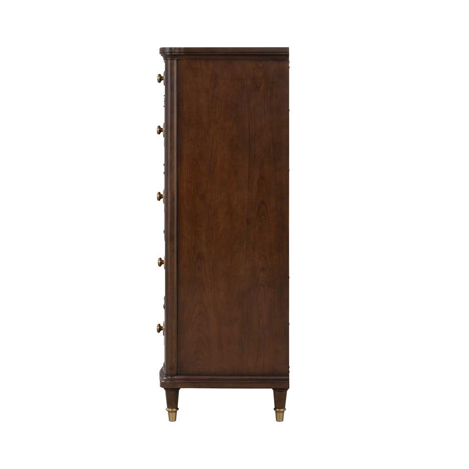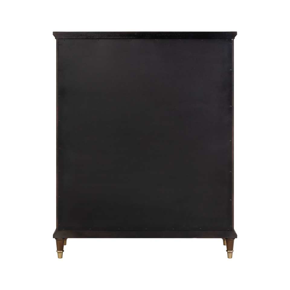 Commode en verre de style transitionnel avec poignées à clé, pieds finition or, finition cerisier foncé, écologique et durable pour hôtel et salon