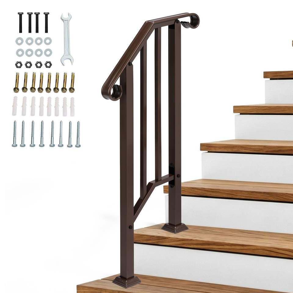 Main courante en fer de style transitionnel avec finition cuivre pour extérieur, 1 marche, inclut un kit d'installation, dispositif d'assistance extérieur
