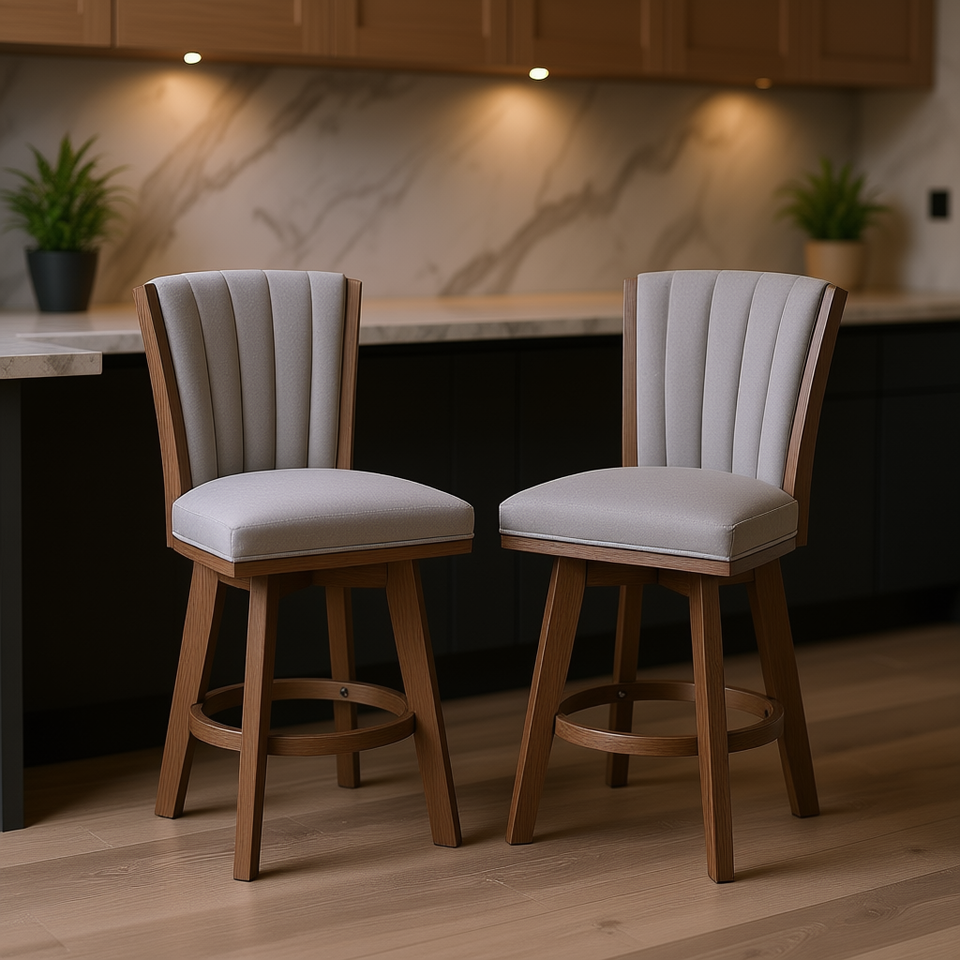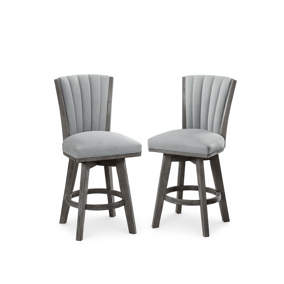 Tabourets de bar de style transitionnel, hauteur de comptoir, pivotants, revêtement en tissu, structure en bois massif, gris, ensemble de meubles de salle à manger