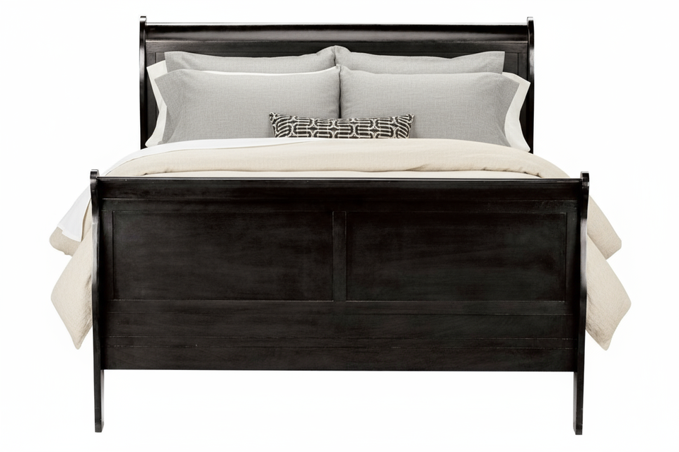 Ensemble de lit plateforme 4 pièces en bois de chêne massif de style transitionnel, écologique, avec finition noire, meubles de chambre à coucher