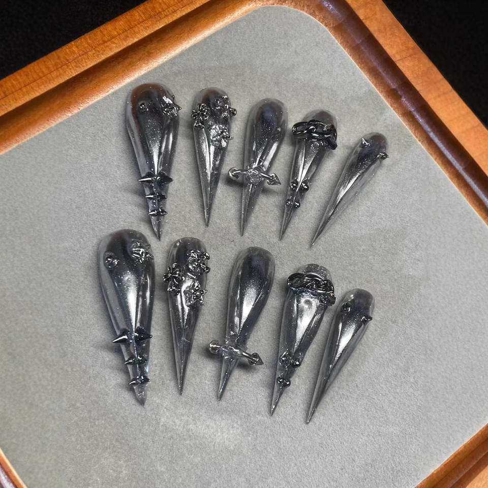 Griffes de dragon courtes noires translucides, griffes de loup, griffes de bête, pour convention de bande dessinée, cosplay, tournage de film, faites à la main, en ABS, couverture complète