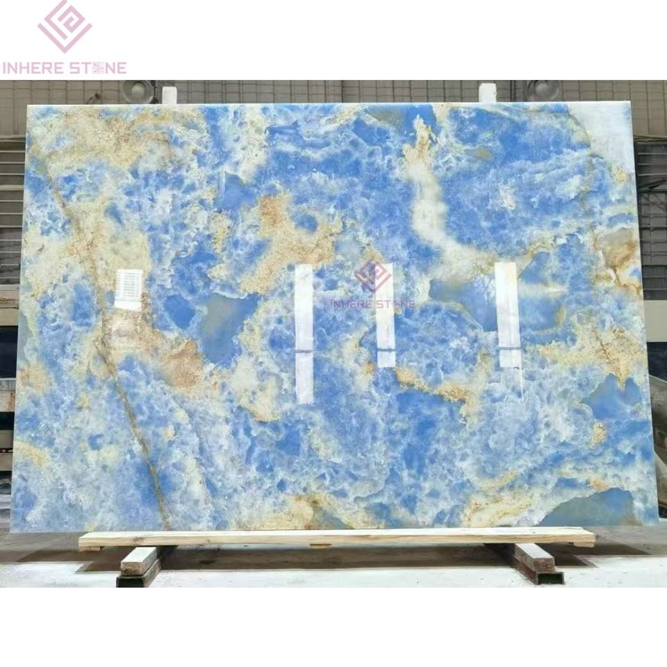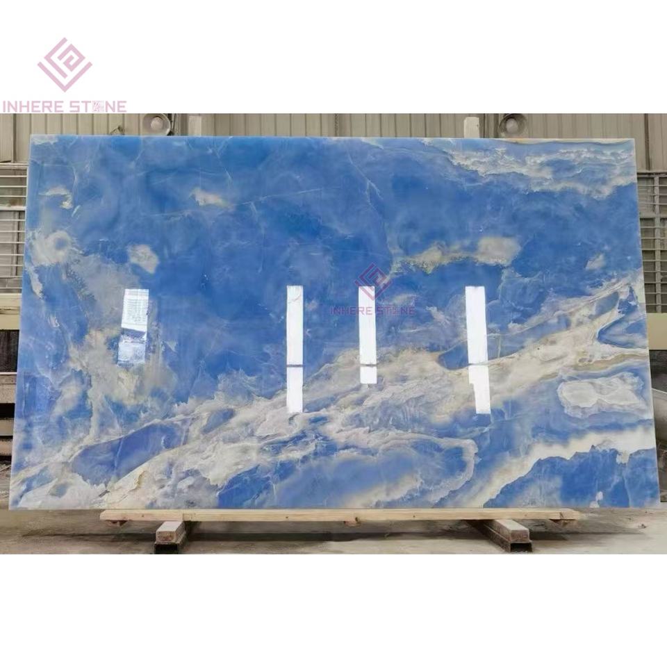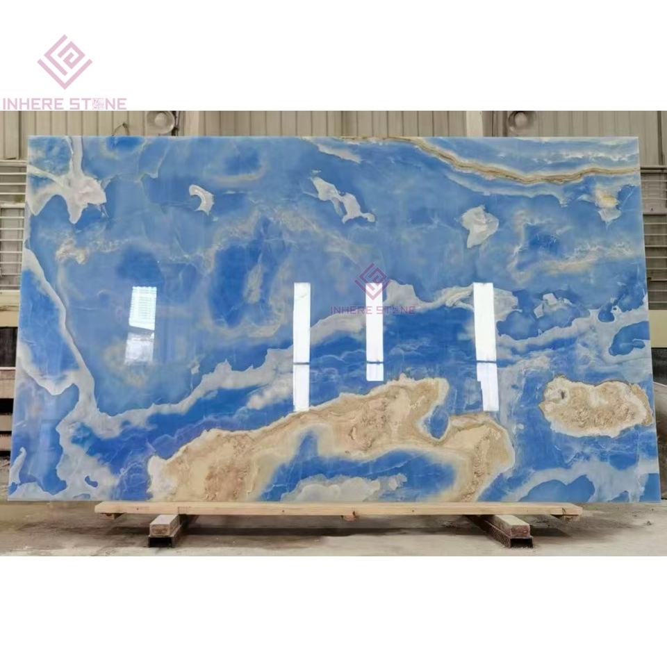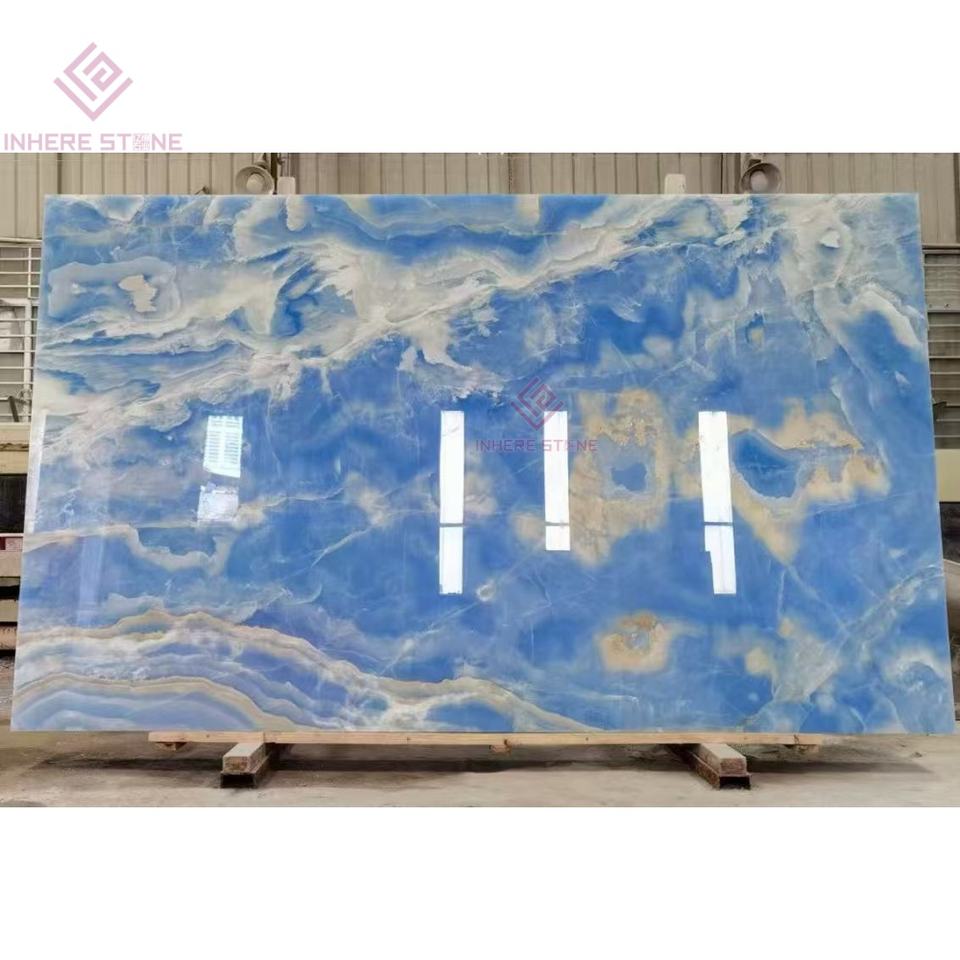 Pierre de haute technologie en onyx bleu translucide pour murs interactifs de musée Planchers de bibliothèque Hub d'innovation d'entreprise Murs caractéristiques