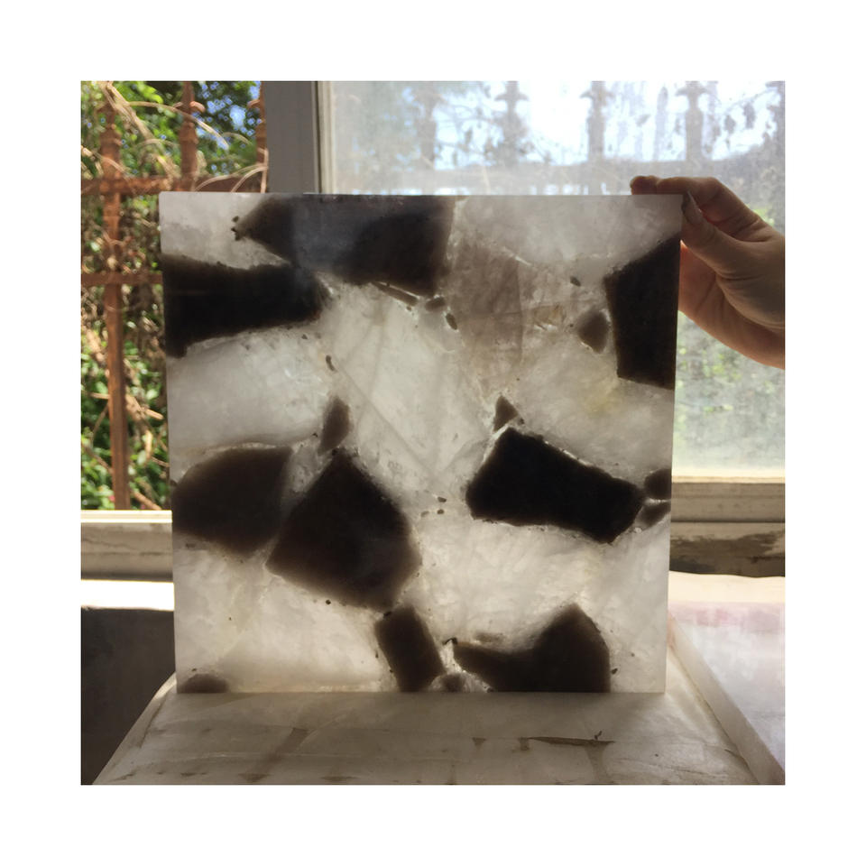 Dalles de verre en jade, pierre de cristal de quartz de fumée translucide