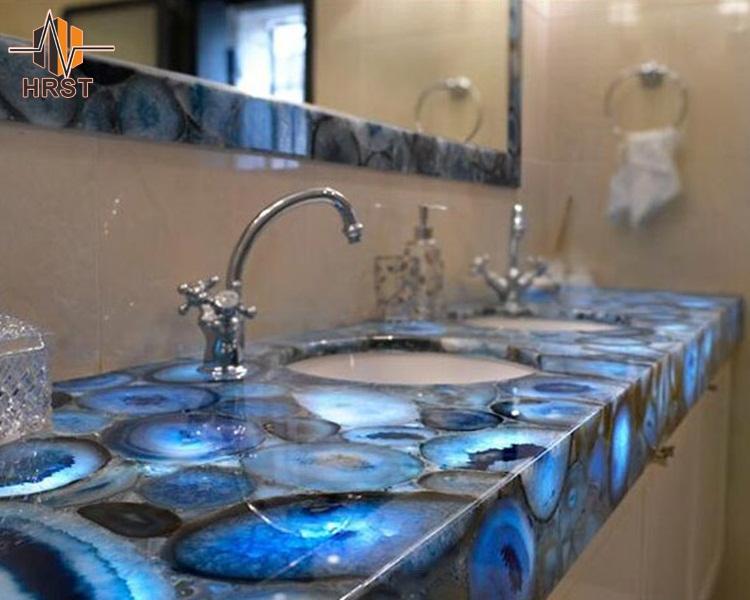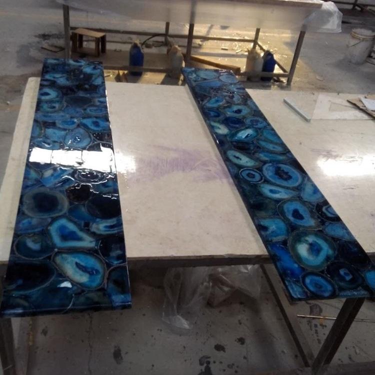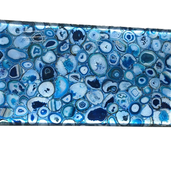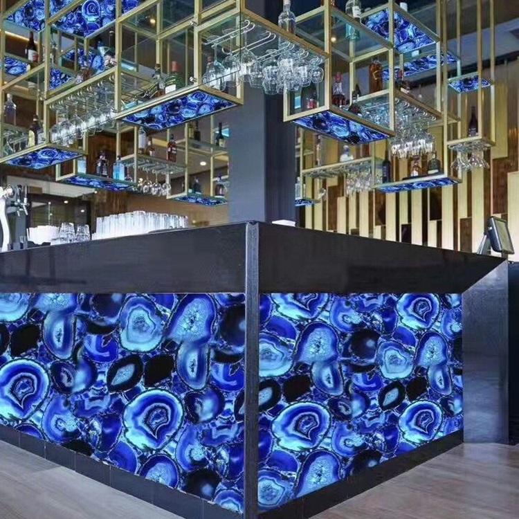 Translucent Natural Agate Laminated With Glass Panel Customized Backlit Blue Agate Gemstone Stone Slabs