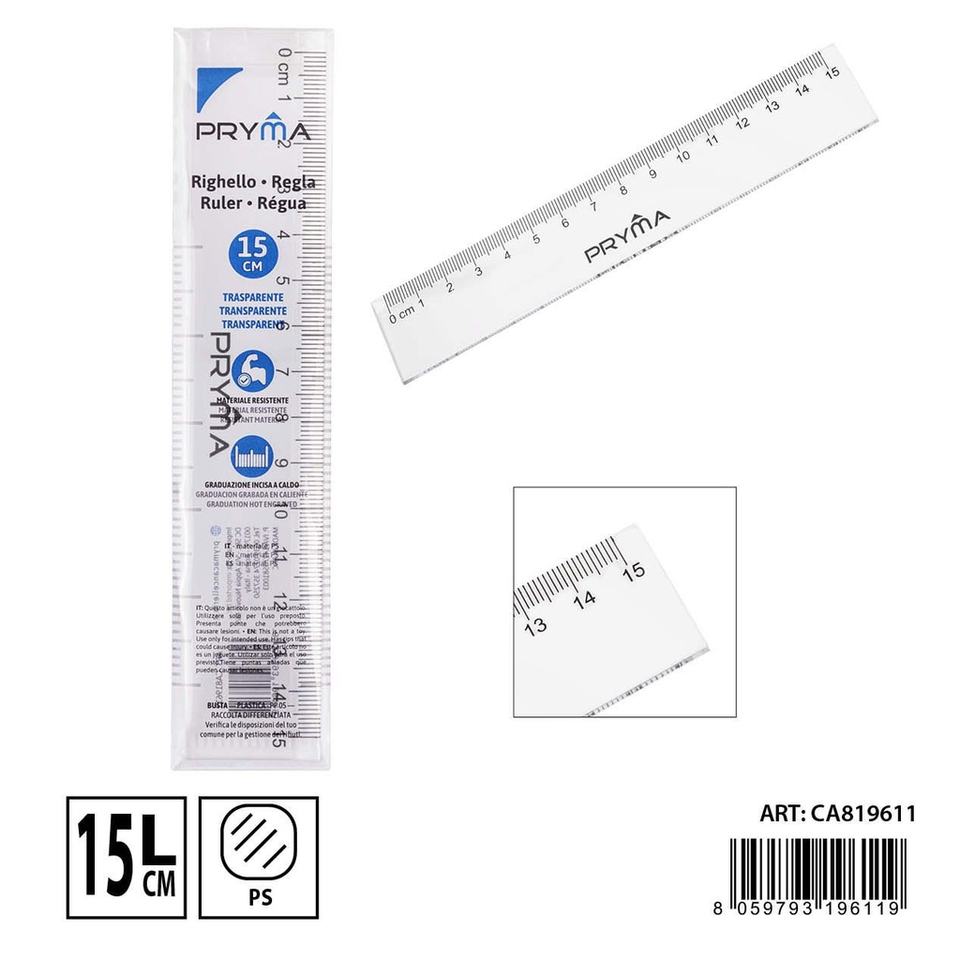 Règle transparente de 15cm pour ensemble de papeterie scolaire 8059793196119