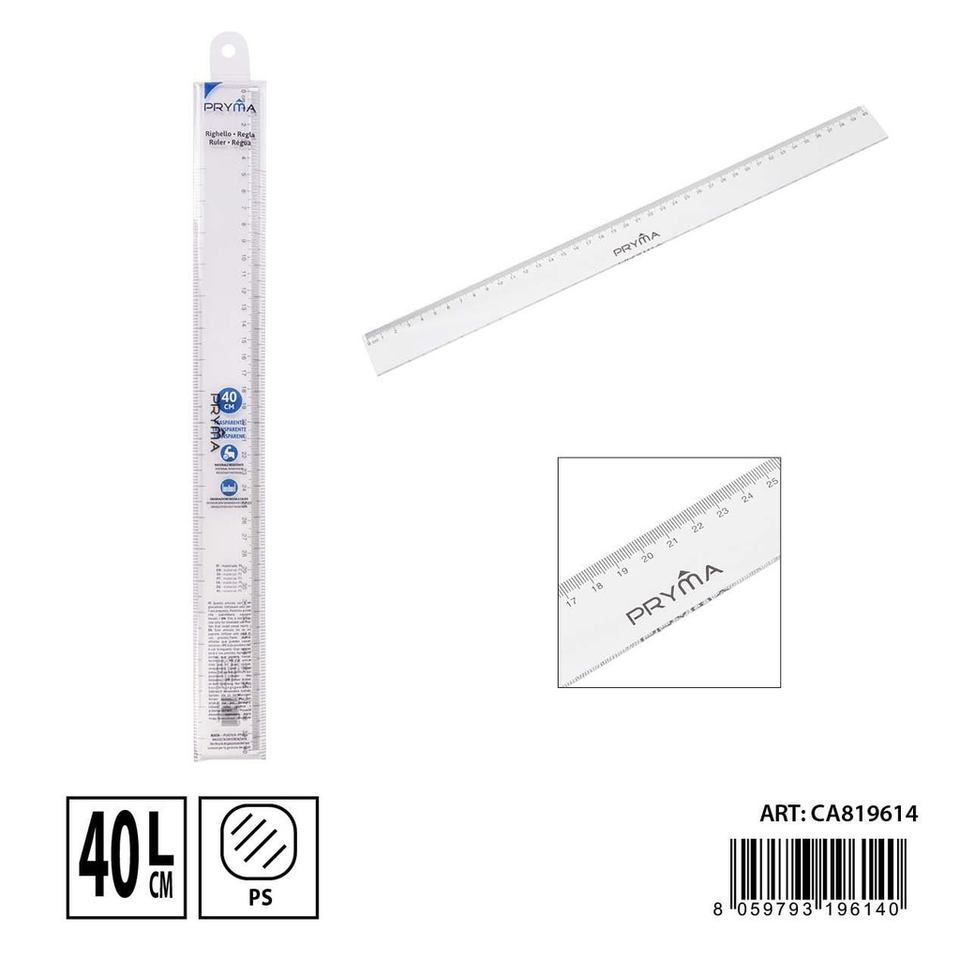 Règle transparente 40cm outil de mesure de papeterie de bureau et d'école 8059793196140