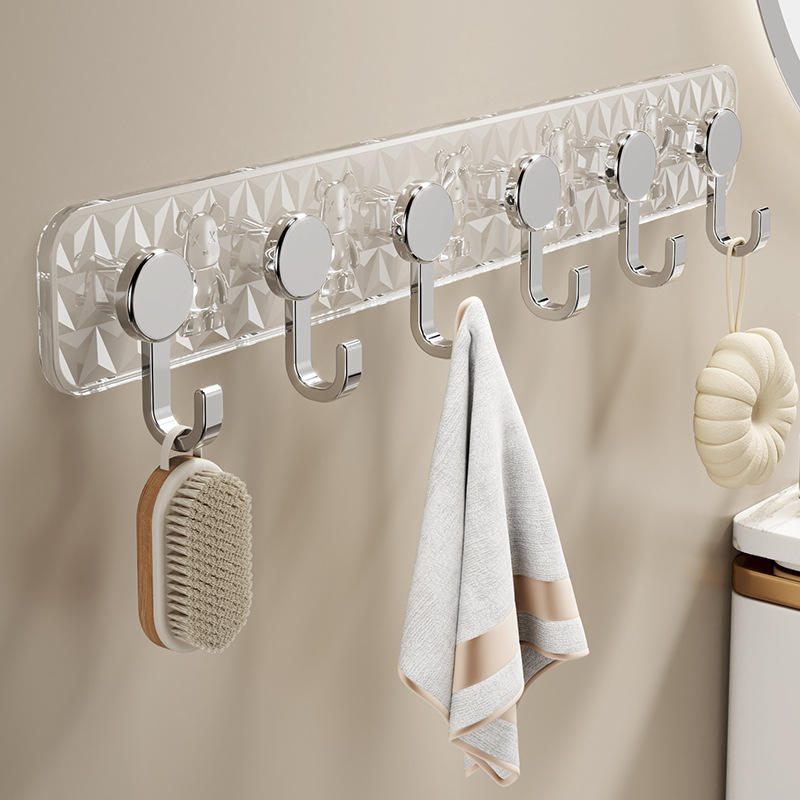 Crochets muraux transparents à 6 crochets, adhésifs puissants, multifonctionnels, pour serviettes, manteaux, chapeaux, utilisation dans la salle de bain