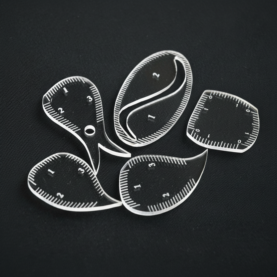 Plusieurs formes de règles pour un traçage précis des sourcils.