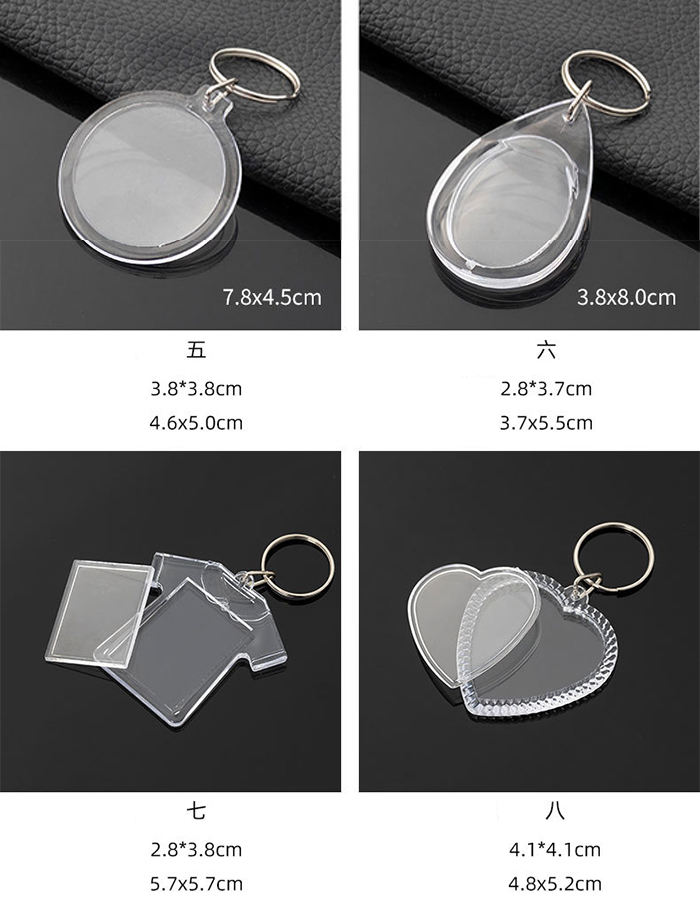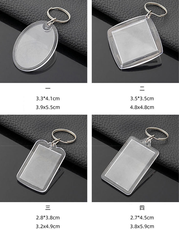 Porte-clés transparent en acrylique vierge, cadre photo en plastique transparent pour numéros