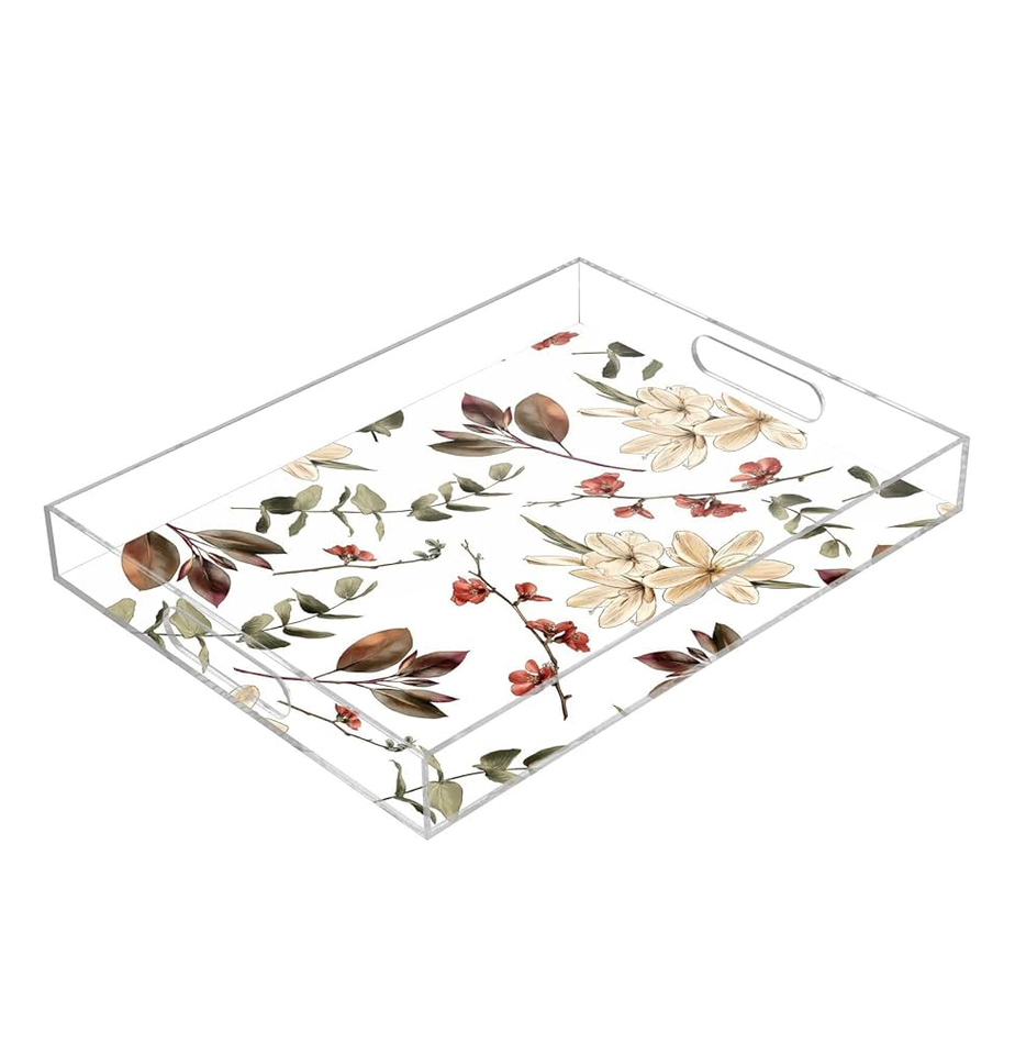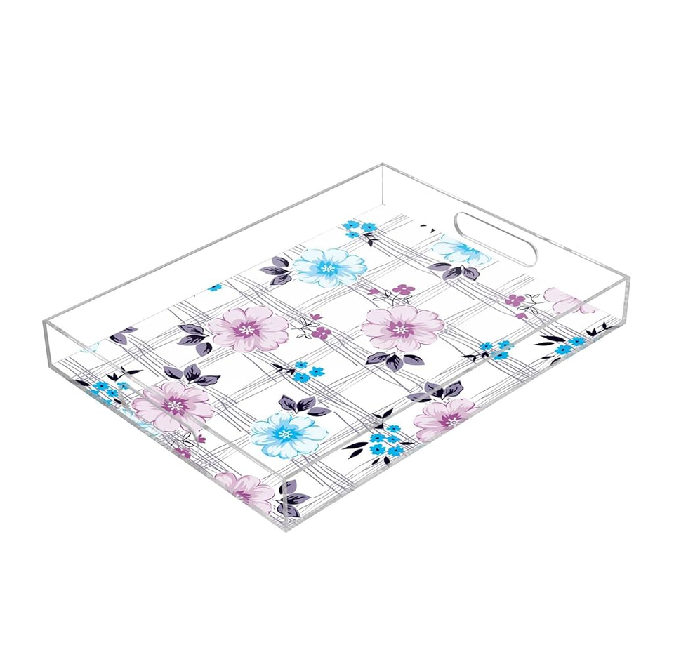 Plateau en acrylique transparent avec poignée découpée au laser Plateau rectangulaire décoratif de conception personnalisée