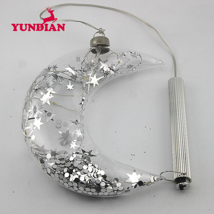 Nom du produit:La lune soufflée a formé mené allument la boule de Noël en verre