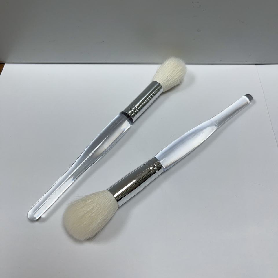 Pinceau de maquillage en poils de chèvre blancs avec manche transparent pour le blush, la poudre, la mousse nettoyante, le lavage du visage