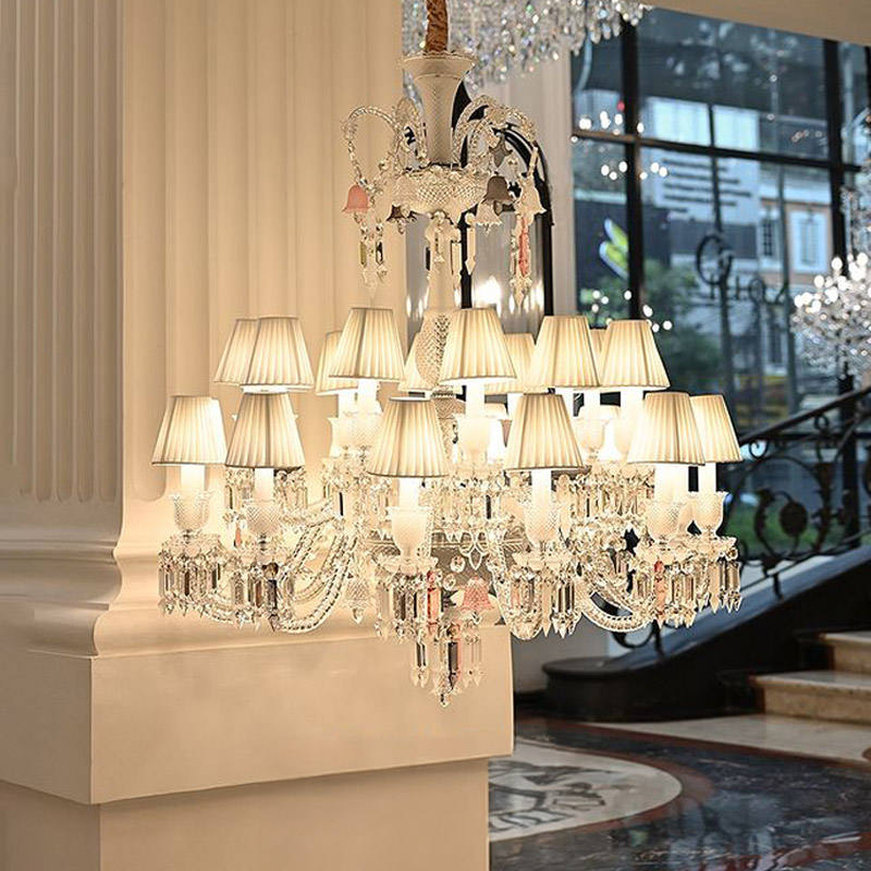 Transparent Crystal Light Living Room Pendant Light Manufacturer White Cover Crystal Luxury Modern Chandelier