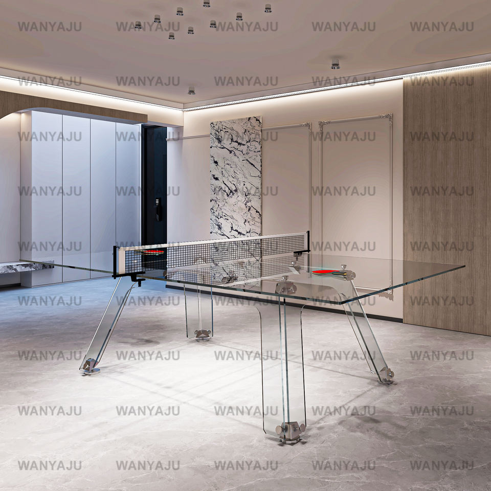 Table de billard/football/tennis de table/poker en verre de luxe sur mesure avec design transparent