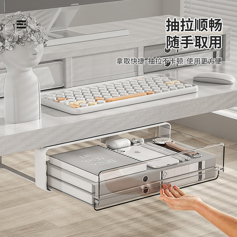 Organisateur de tiroir de bureau transparent rectangulaire mural avec compartiments pour rangement sous le bureau
