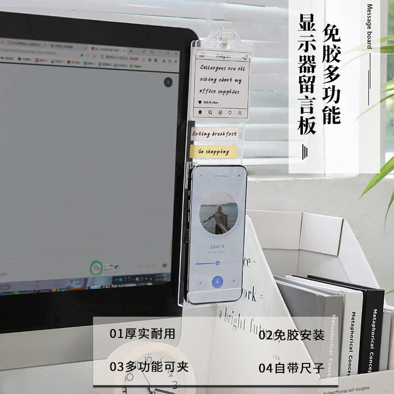 Transparent Desktop Notepad Computer Screen Message Board Plastic Square Single Sided Self Adhesive Memo Pad For Monitor Office