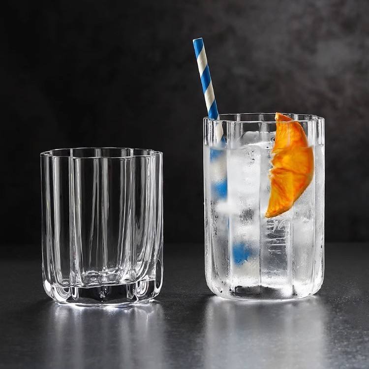 Verre à cocktail transparent écologique à rayures pour Mojito, Gin Tonic, Whisky, Jus, Café – Idéal pour bars et restaurants