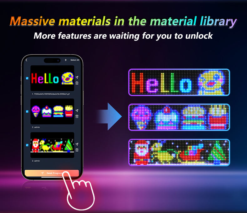 Format pris en charge:Texte, Motif, Animation, Graffiti, Rythme