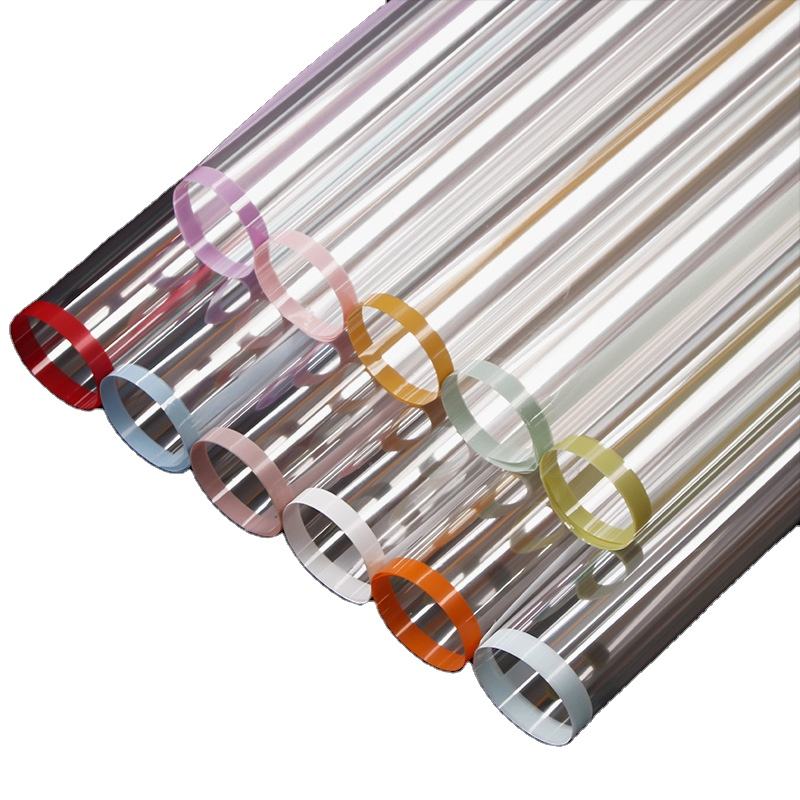 Papier d'emballage floral transparent avec bords colorés, imperméable, pour bouquets, film d'emballage floral, matériel floral pour fleuristes