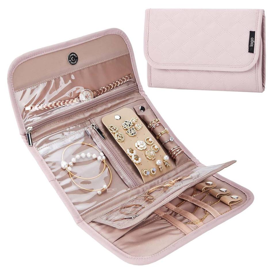 Transparent pliable bijoux voyage organisateur étui clair livret fermeture éclair pochette rouleau anneau liant bijoux sacs de rangement livret