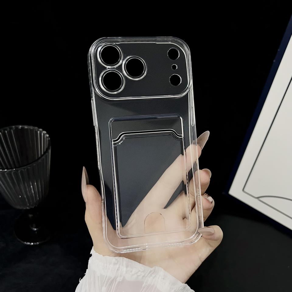 Étui de téléphone transparent anti-chute à quatre coins en TPU+PC avec porte-cartes électroplaqué pour Oppo Vivo