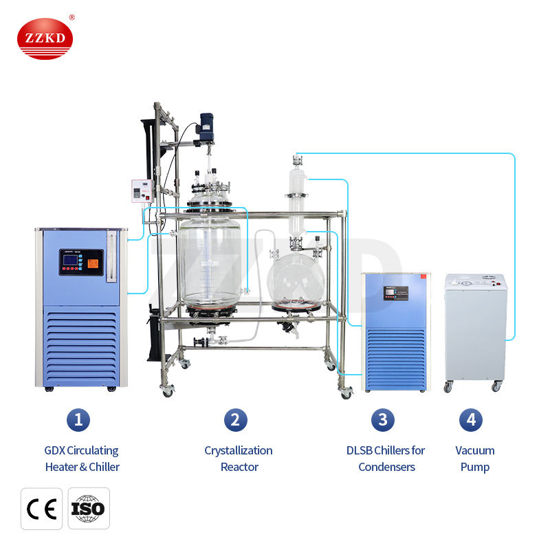 Réacteur de cristallisation en verre transparent, réservoir de chauffage à mélange continu, filtre, réacteur chimique avec circulateur thermostaté