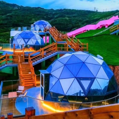 Tente de dôme géodésique de glamping de maison d'igloo en verre transparent pour la neige extérieure d'hiver chauffée