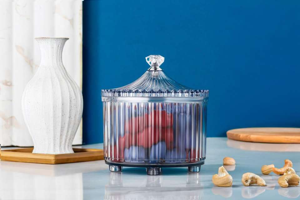 Boîte de rangement transparente en verre pour snacks avec boutons en cristal, 3 bocaux amovibles, couvercle écologique anti-fuite pour fruits secs et noix - Mariage