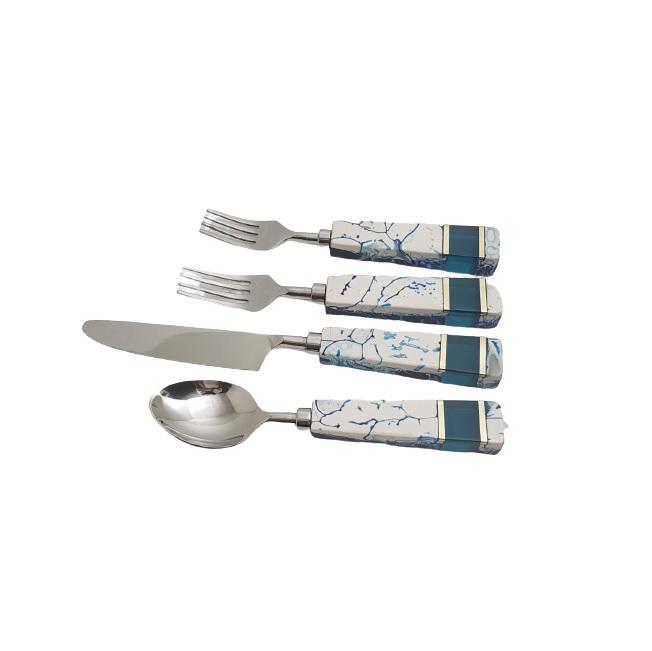 Ensemble de couverts en acier inoxydable avec manche en résine verte transparente, moderne, cinq pièces, cuillère, fourchette, couverts durables, couverts de mariage