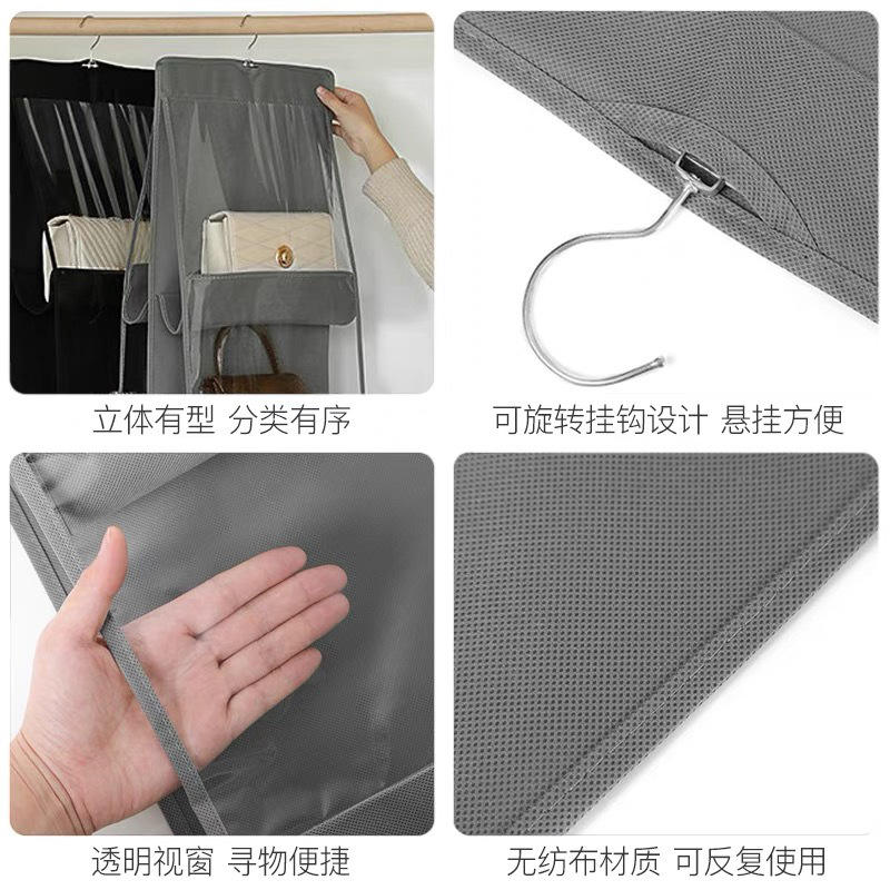 Transparent Hanging Bag Storage Organizer With Clear Pockets For Wardrobe Closet Dustproof Multipurpose Rectangle Hook Type