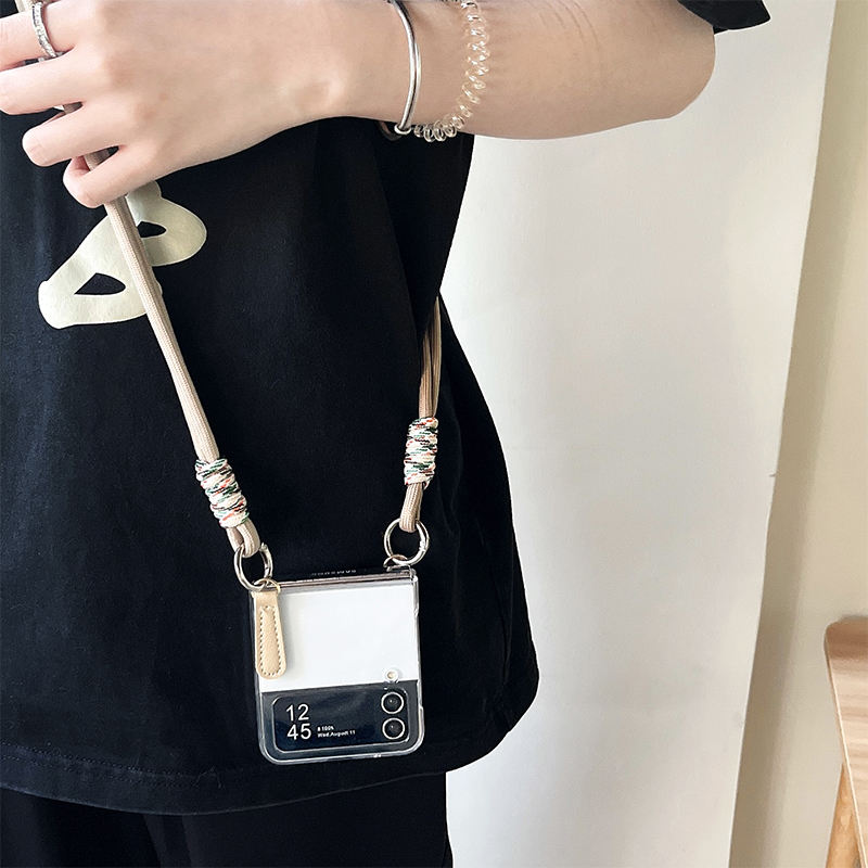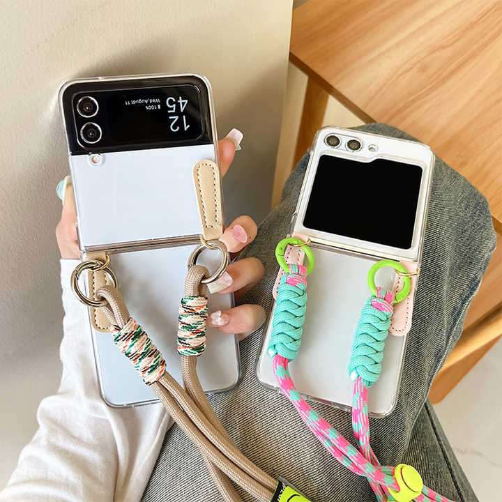 Coque rigide transparente avec sangle à bandoulière Flip étui de téléphone à écran pliant avec sangle arrière pour Samsung zflip5 zflip4 zflip6