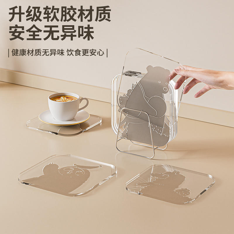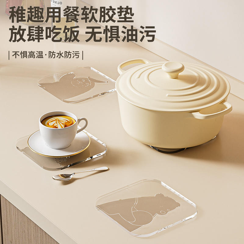 Transparent Heat Insulation Mat Square Cute Design Thickened Kitchen Placemat High Temperature Resistant Odorless PVC Wash Free