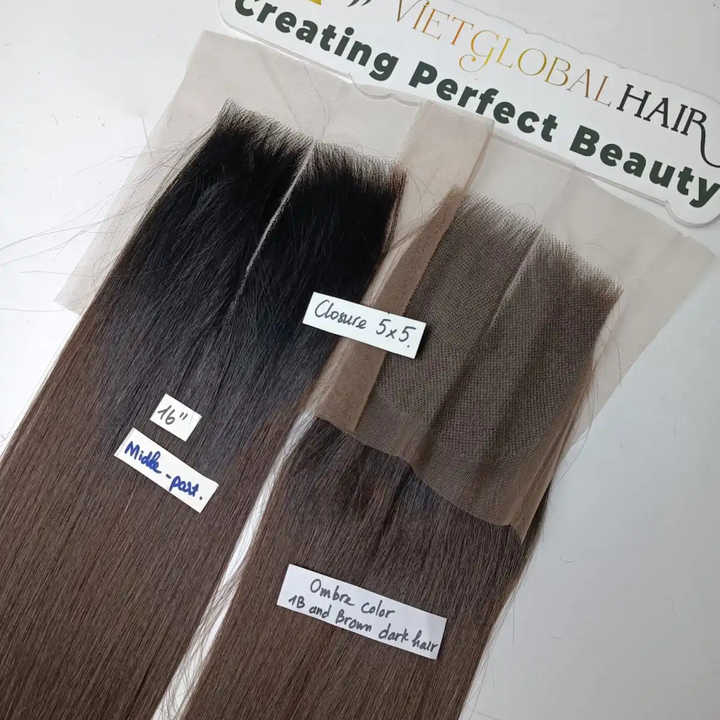 Fermeture en dentelle transparente BoneStraight haute qualité Ombre couleur cheveux vierges pour les femmes noires cheveux vietnamiens non transformés
