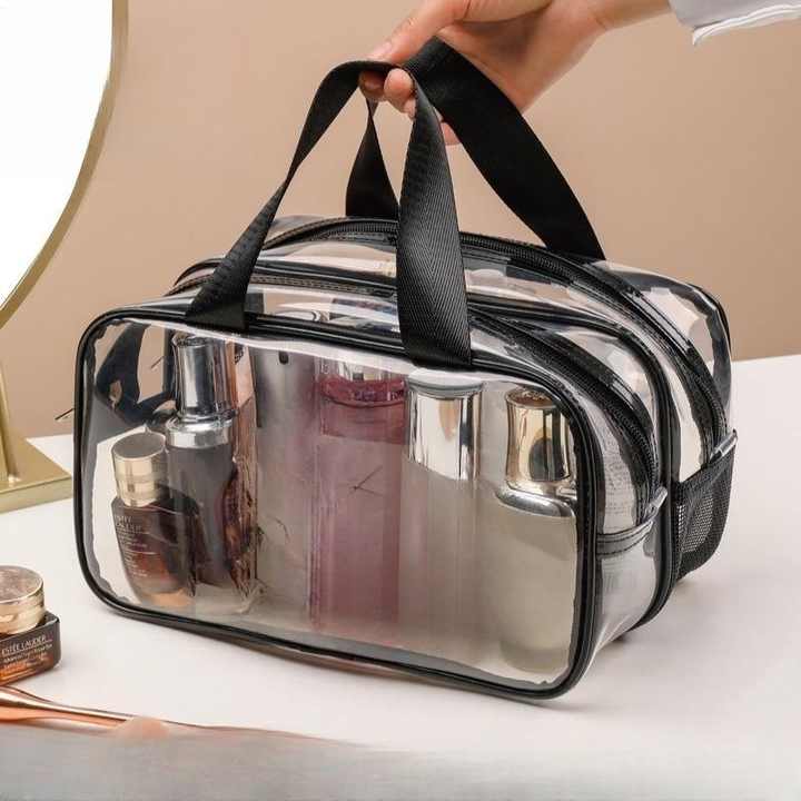 Trousse de maquillage transparente de grande capacité avec logo personnalisé en gros sac cosmétique portable étanche en PVC