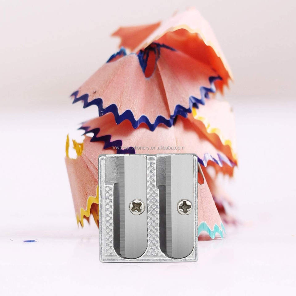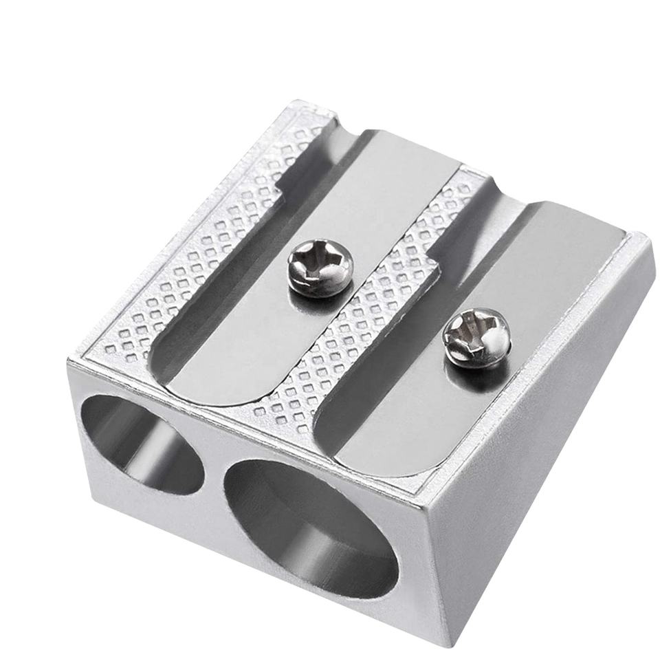 Taille-crayon diagonal de luxe transparent en plastique et métal avec 2 trous pour enfants