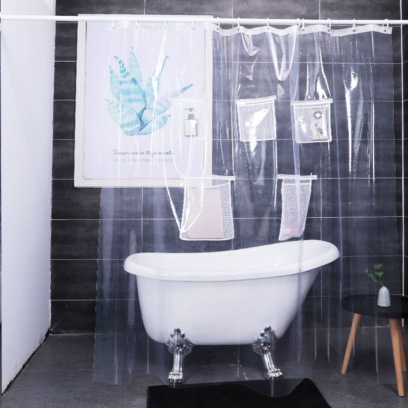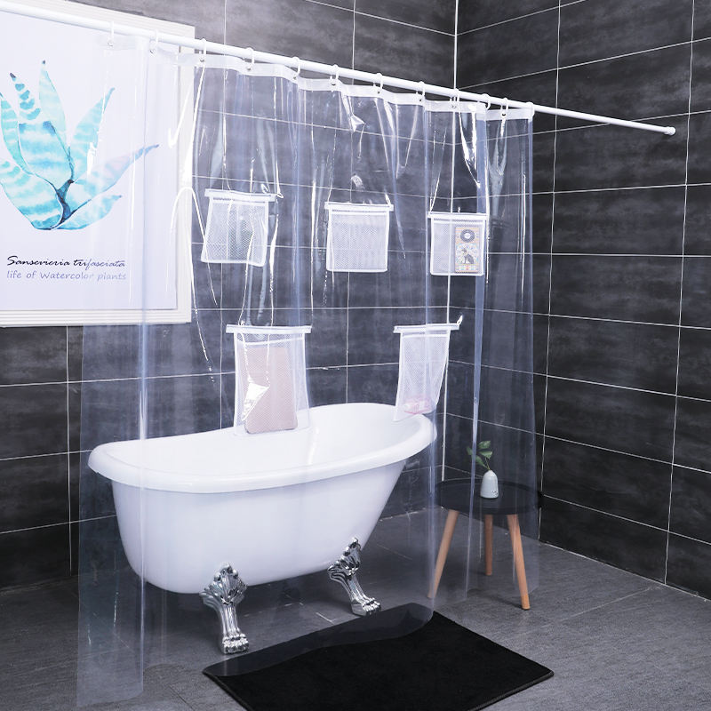 Rideau de douche transparent en maille PEVA épaissi, imperméable et résistant à la moisissure pour séparation de salle de bain